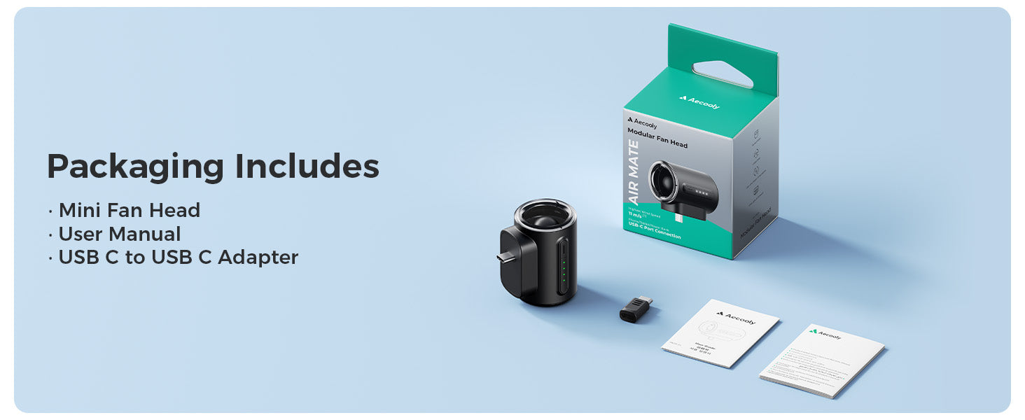 Stay cool instantly with the Aecooly Modular Fan Head Air Mate USB-C, a compact and innovative mini fan designed for modern devices. Simply plug it into your USB-C smartphone, power bank, or laptop and enjoy immediate airflow without needing a separate battery.