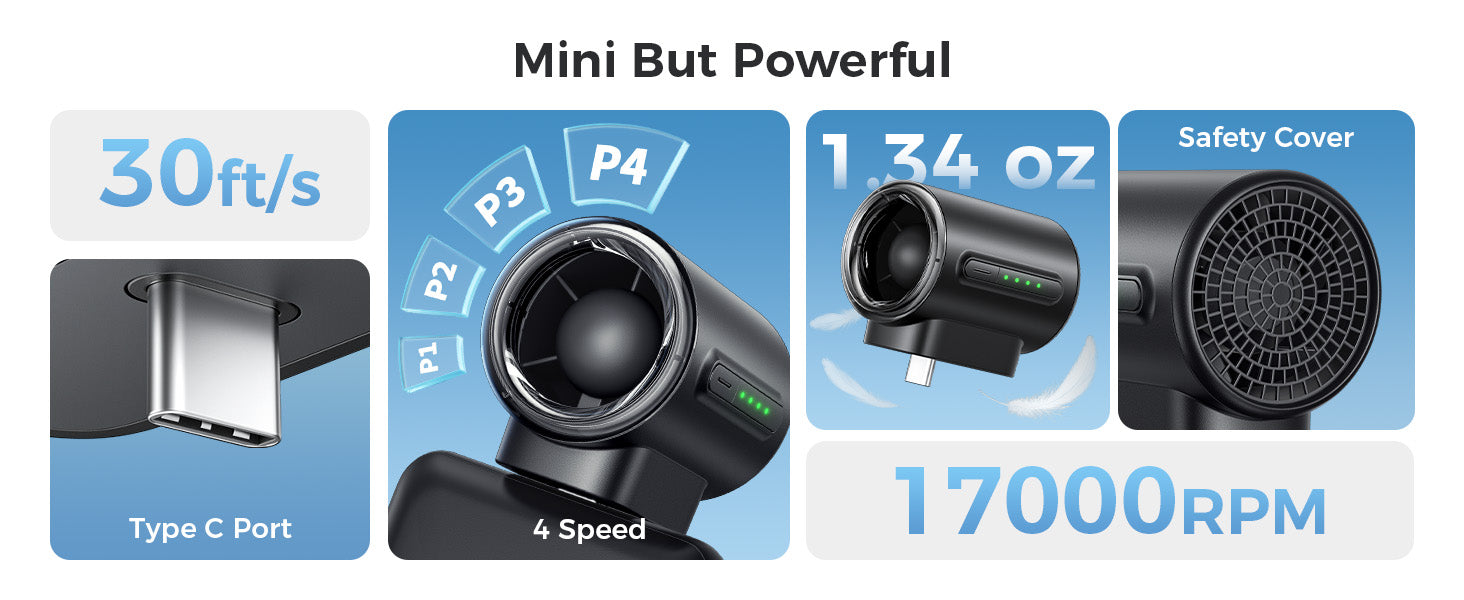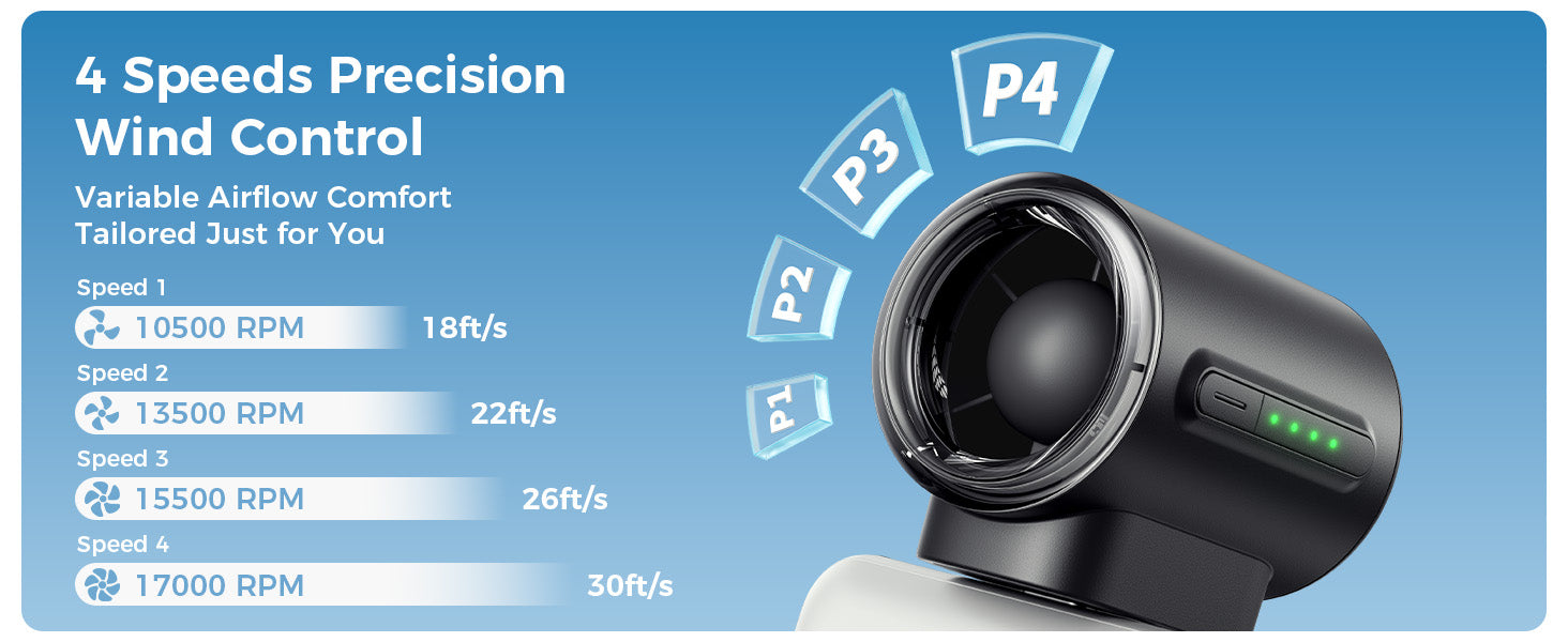 এর ছোট ও lightweight design এটিকে অত্যন্ত portable করে তুলেছে, ফলে আপনি সহজেই pocket বা bag-এ বহন করতে পারবেন। Strong airflow থাকা সত্ত্বেও এটি energy efficient এবং convenient।
