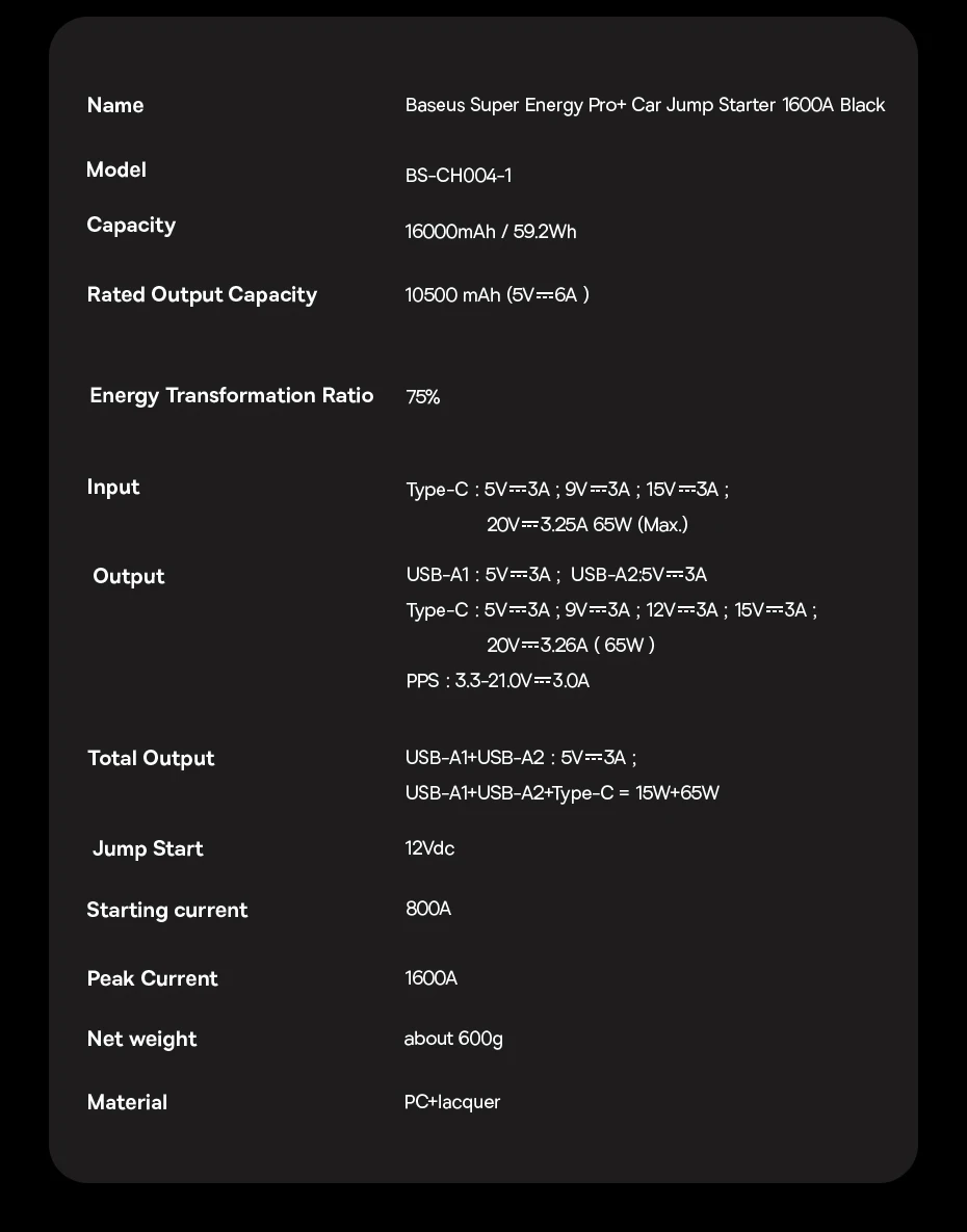 Name: Baseus Super Energy Pro+ Jump Starter (1600A)