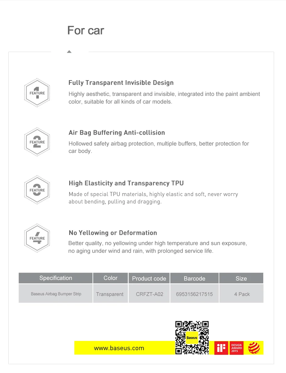 Baseus Airbag Bumper Strip Transparent 4 pcs