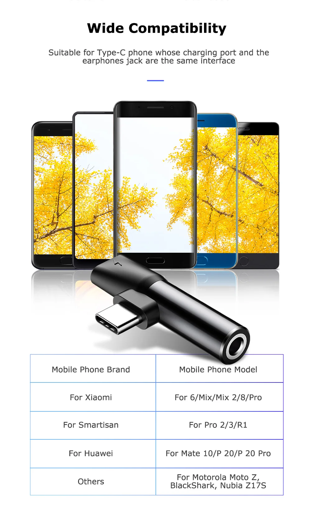 – Perfect for Type-C phone whose charging port and the earphones jack are the same interface.