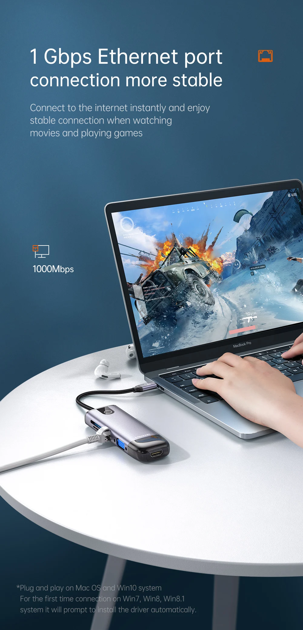 Equipped with a RJ45 port, this USB Type C Lan network adapter supports 10/100/1000Mbps network connection, ideal for streaming movies, downloading large files or playing games.