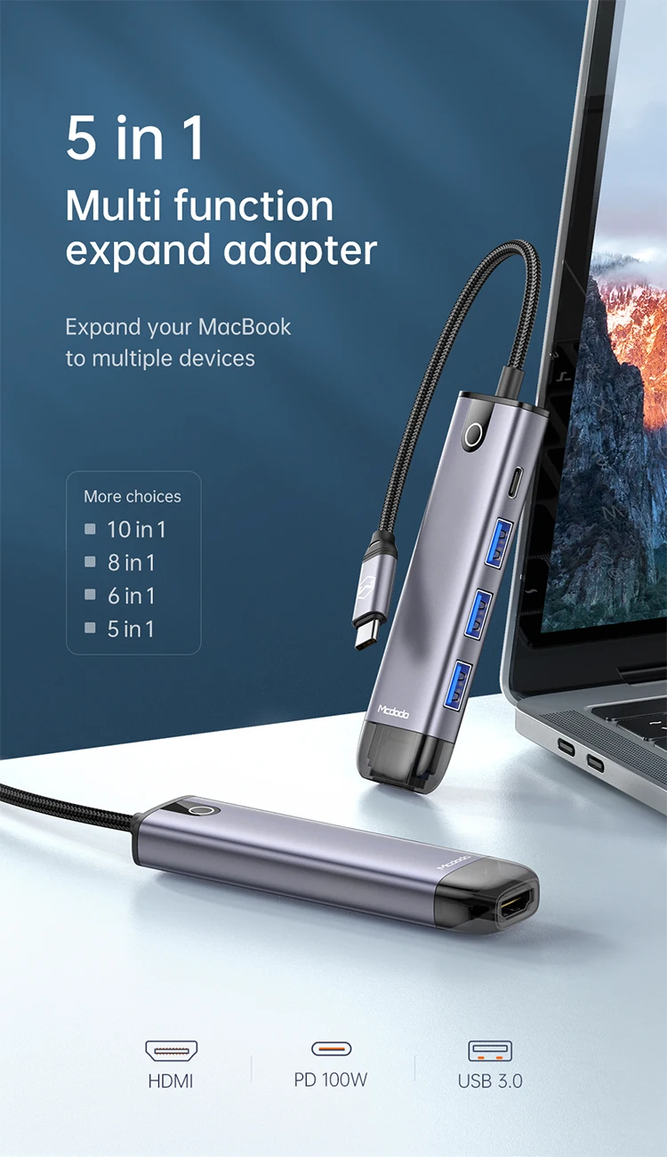 There are 4 models optional, different model with different interface and appearance, please choose suitable model before purchase:(1) 5-in-1 HDMI Model : HDMI + 3*USB3.0 + PD 100W(2) 6-in-1 HDMI Model : HDMI + SD/TF + 2*USB3.0+PD 100W(3) 8-in-1 HDMI Model: HDMI + SD/TF + 2*USB3.0+USB2.0+PD 100W+LAN RJ45(4) 10-in-1 VGA Model: USB3.0*2+USB2.0*2+HDMI+PD 100W +LAN RJ45+TF+SD+VGA