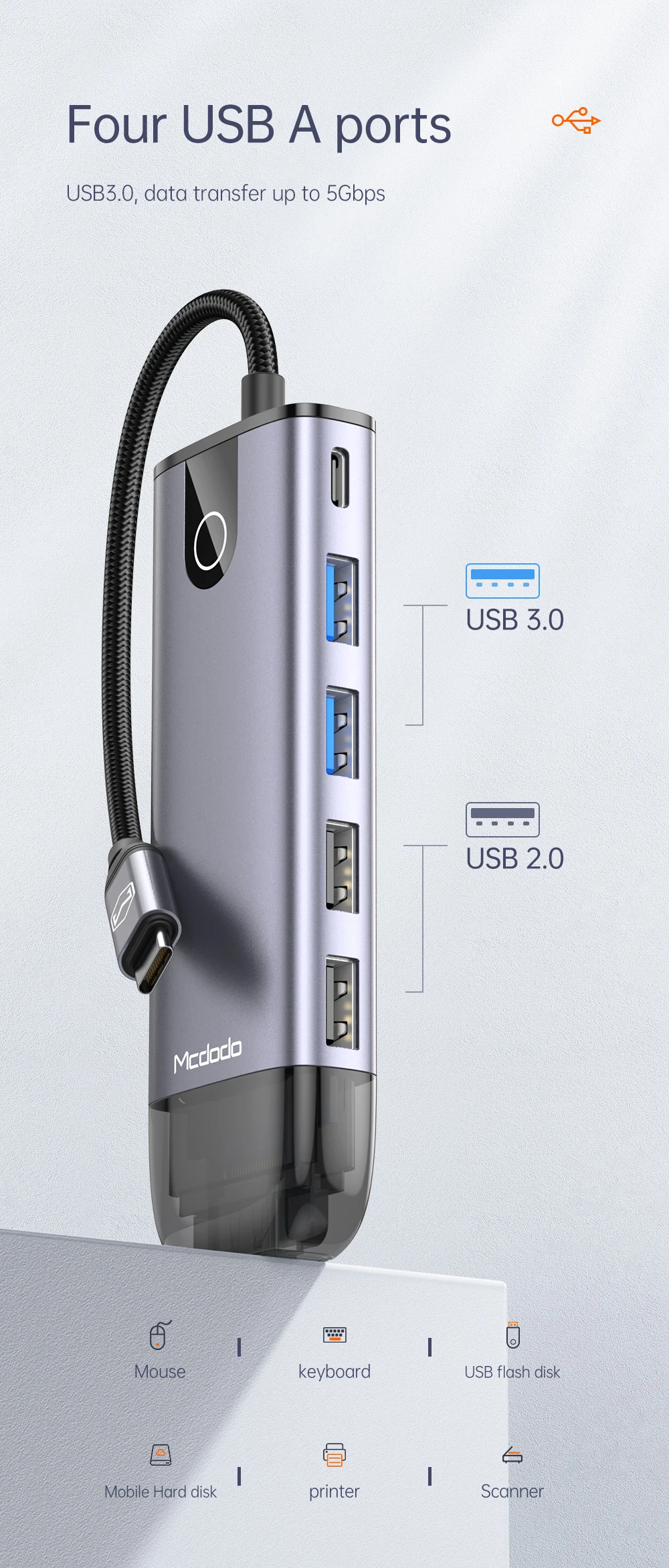 USB Type C hub adds extra 2 USB 3.0 and 2 USB 2.0 ports for your laptop, allowing to connect multiple USB peripherals.Support faster data transfer up to 5Gbps, 10X faster than USB 2.0.