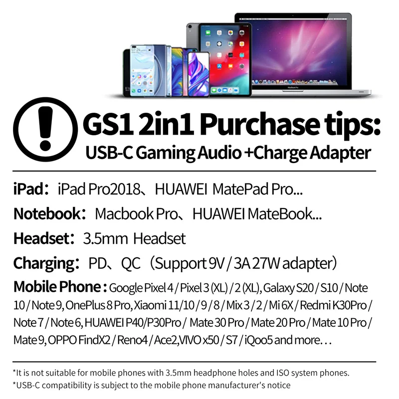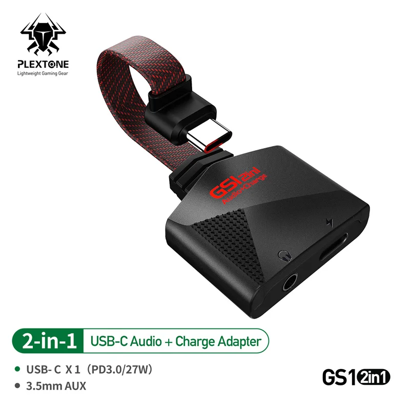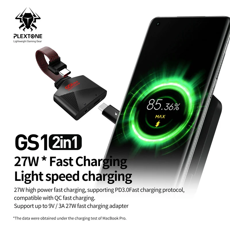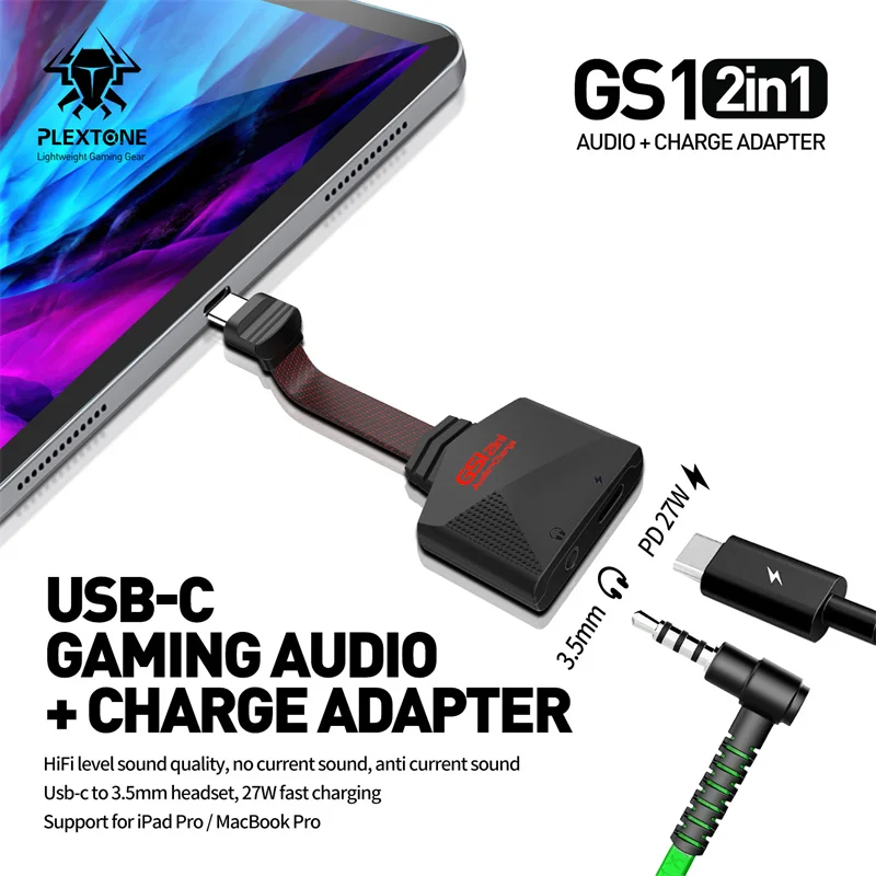 GS1 2 in 1 Type-C to 3.5mm 27W Audio Jack Fast Charger HiFi Mobile Phone Game Sound Card Adapter Compatible with MacBook Pro/iPad Pro
