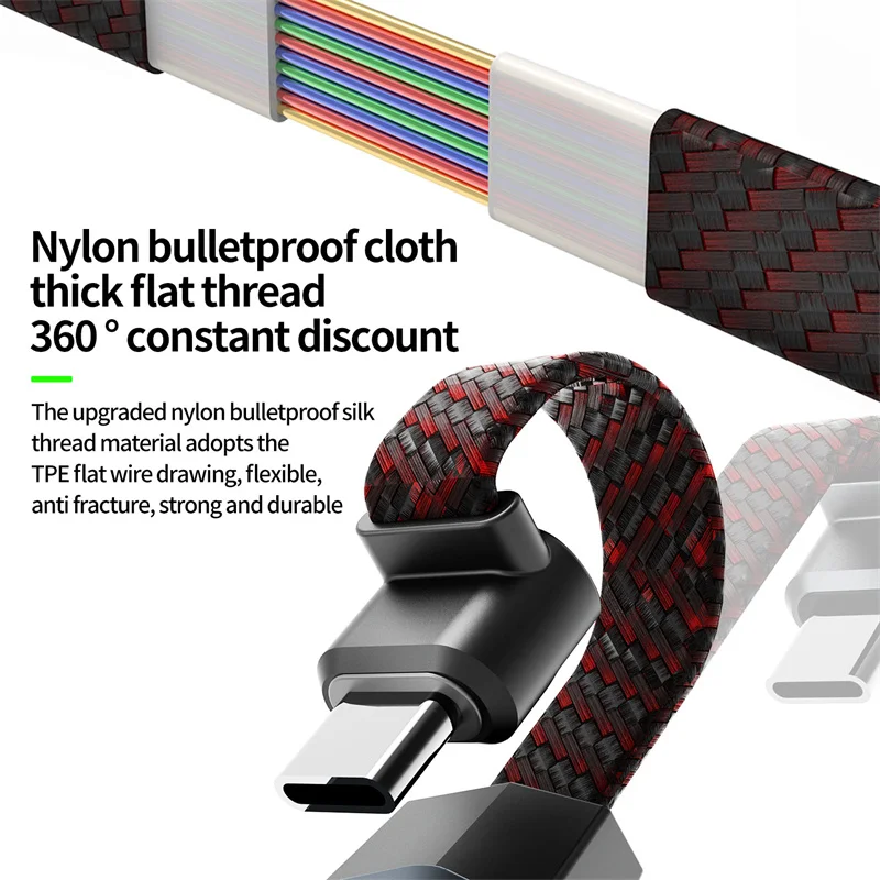 Nylon bullet-proof cloth thick flat wire, 360° continuous folding, upgraded nylon bullet-proof wire, TPE drawing flat wire at the bend, flexible and anti-breaking, strong and durable.