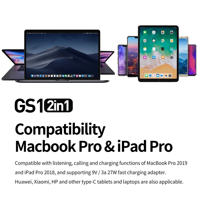 Compatible with MacbookPro and iPad Pro. Compatible with the listening, calling and charging functions of for MacbookPro and iPadPro2018.
