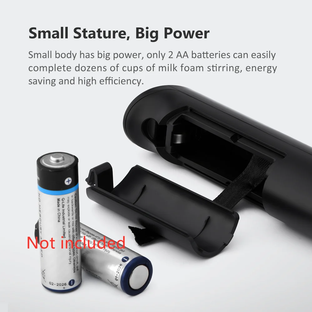 Small Stature, Big Power Small body has big power, only 2 AA batteries can easily complete dozens of cups of milk foam stirring, energy saving and high efficiency.