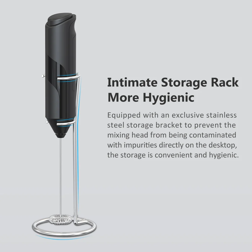 Intimate Storage Rack More Hygienic To Take And Put Equipped with an exclusive stainless steel storage bracket to prevent the mixing head from being contaminated with impurities directly on the desktop, the storage is convenient and hygienic.