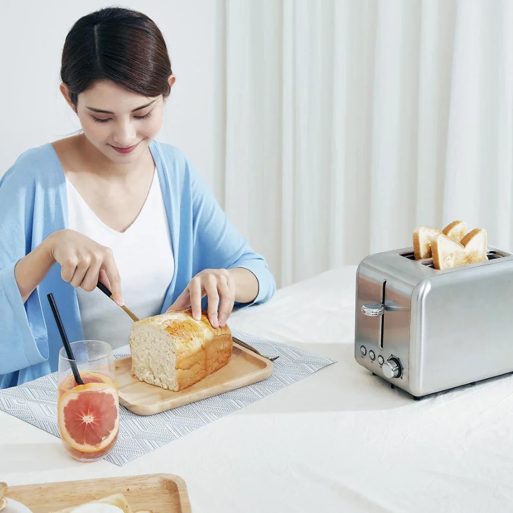 Just needing 2 minutes offers you hearty and delicious breakfast, no need complex operating process, the Deerma Bread Baking Machine that made of stainless steel and ABS material is really convenient and fast to make or reheat the bread and sandwich.