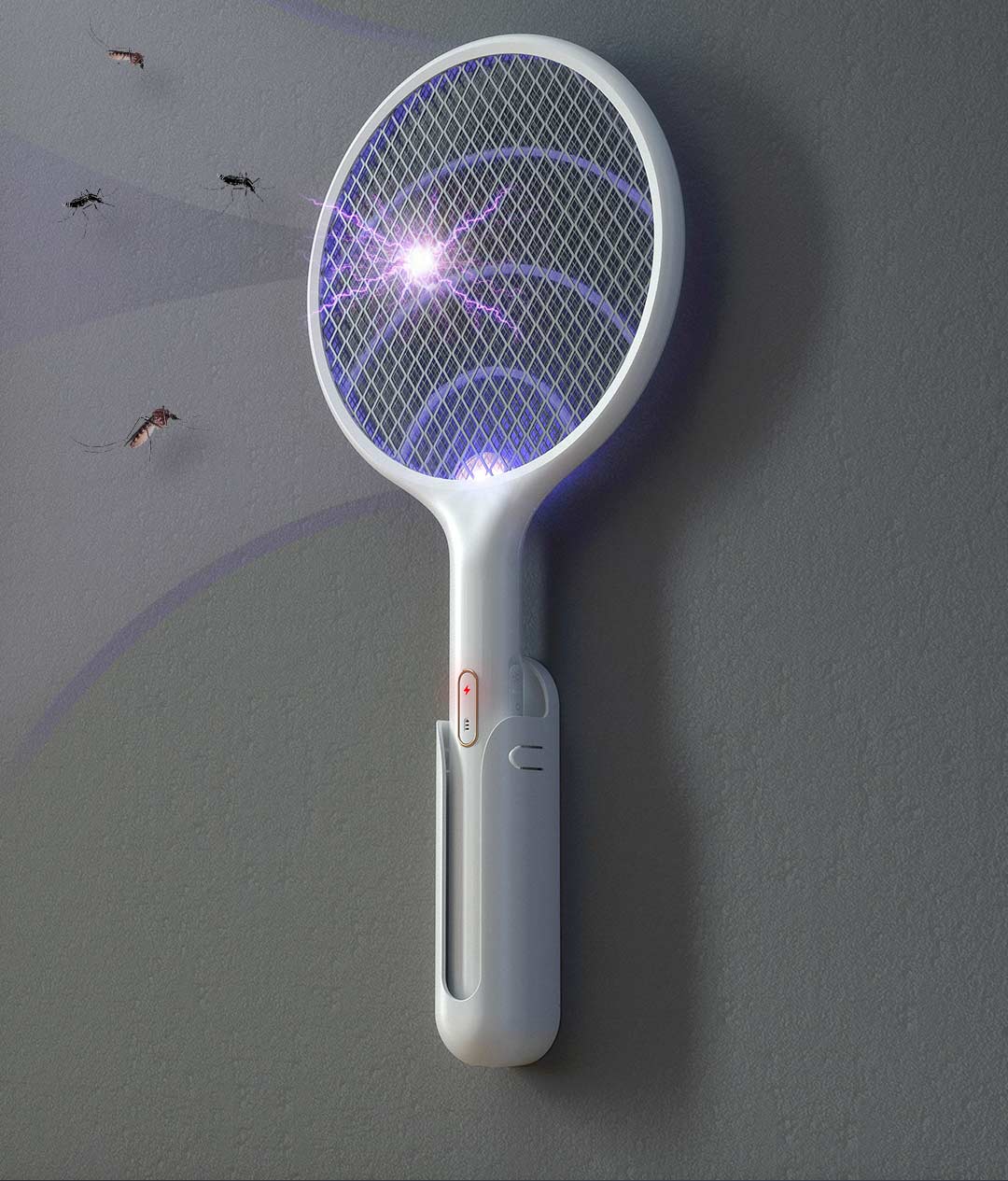 Qualitell 2in1 Electric Mosquito Swatter Dispeller Killer Lamp Wall-mounted Mosquito Killing Dispeller USB Charging with Base Braket